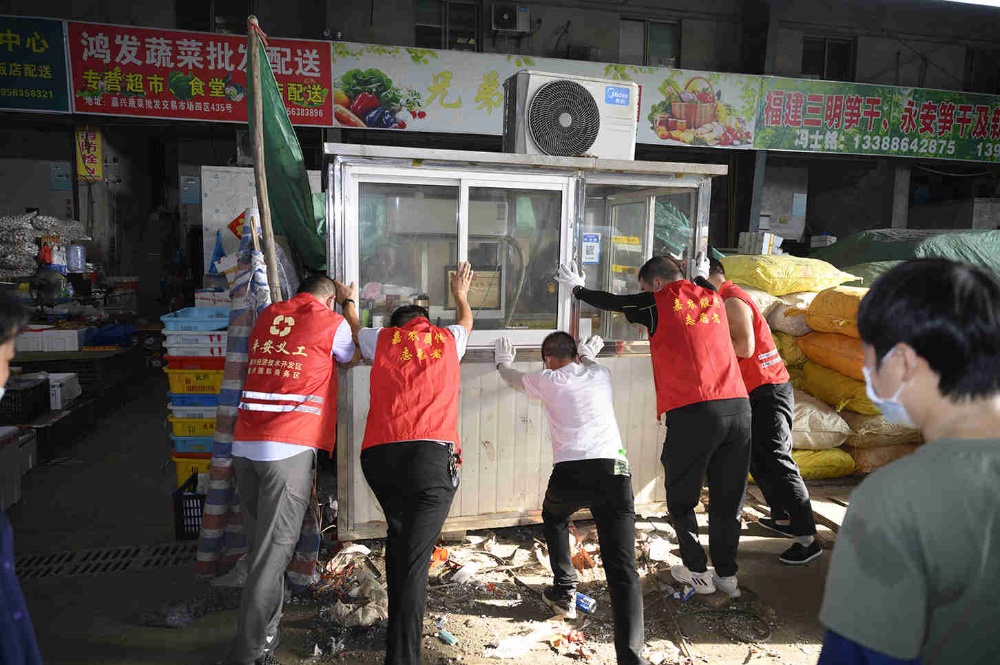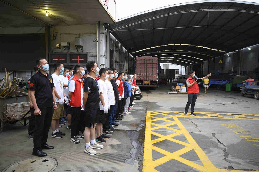 黨員青年突擊隊在行動。面對市場創(chuàng)建現(xiàn)場整治節(jié)點難點問題,黨員青年突擊隊隊員們沖了上來。15日早上6點,突擊隊員一行共48人踴躍參加了此次整治突擊行動。